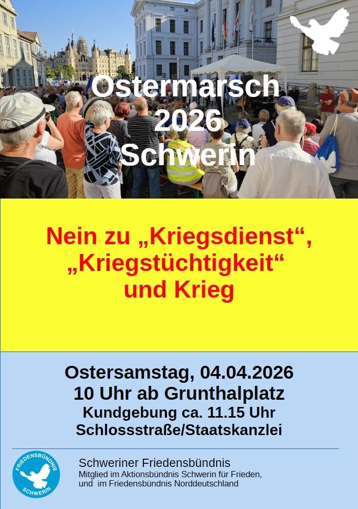 Der Schweriner Ostermarsch findet wiederum am Ostersamstag, dem